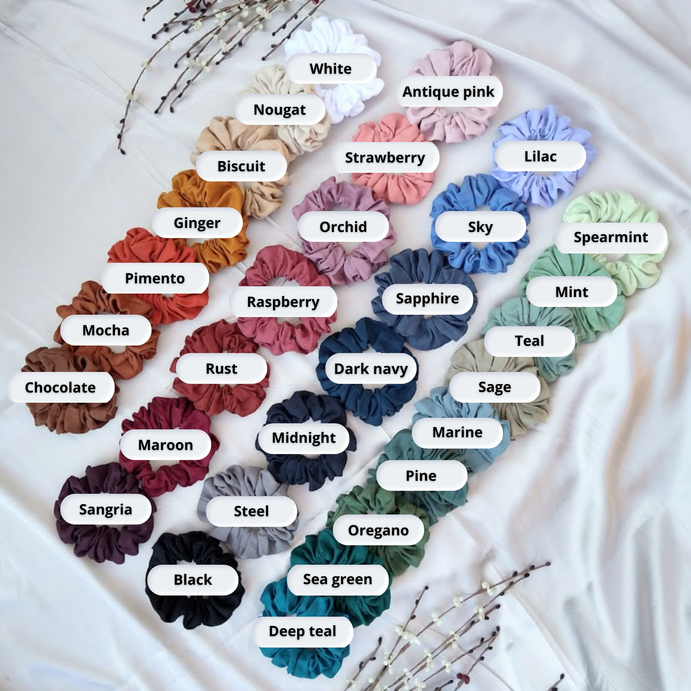 • 30 beautiful colours – From earthy neutrals to soft pastels and bold tones, there’s a linen scrunchie for every outfit and mood.